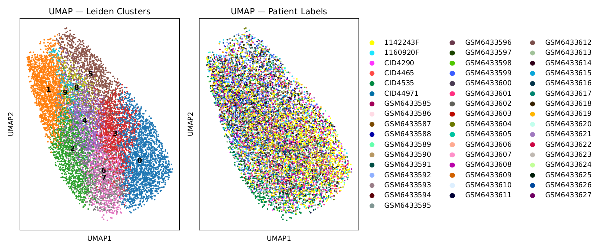 sc.pl.umap(adata, color='patient', ax=axes[1], show=False, size=20)